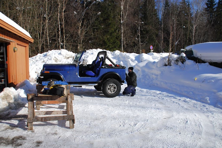 I helga har vi fiksa dynamo, fjernlys, baklykter, grab bar, etter mye knoting finni ut at panserlås er for jenter, fjerna 2" BL og body mounts og erstattet disse med 1" BL. Prøvemontert nye breddere. Fram er det bra, bak passer 2 hull. Er ikke stål til resten, men har 5 flotte full i fin sirkel over breddern...